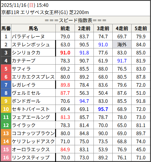 <スピード指数表について>