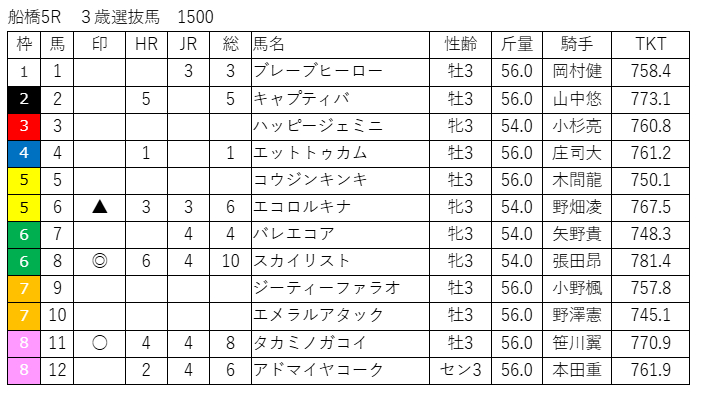 総合力ランク1位のスカイリストを本命視。相手筆頭は総合力ランク2位のタカミノガコイ、総合力ランク3位タイのエコロルキナを指名。