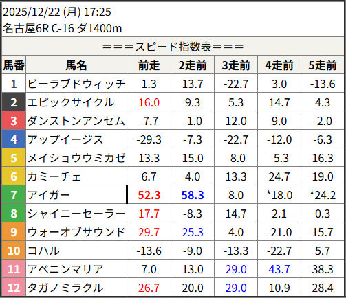 ・走破タイムを元に、斤量・ペースにて補正をかけた指数
